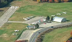 In 2000 the airport was briefly closed after SPNEA declined to renew Hordon's lease citing concern for the safety of a historic structure on the property.[3] Hordon prevented use of the airport runway by future lease holders by erecting a 27-foot tall barrier on the portion of the runway on his property adjacent to the airport, eventually failing in attempts to prove ownership of the property.[4][5][6]