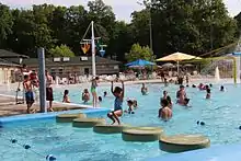The Plymouth Aquatic Center at City Park is a zero-depth-entry pool with waterslides, a sand play area and concessions.