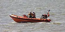 An Inshore Rescue Boat (IRB) was first stationed at Plymouth in May 1967. After a year when this was a D class inflatable, larger ILBs were provided. Initially in the form of 18-foot (5.5 m) Hatch and McLachlan lifeboats, but since 1983 by 7.5-metre (25 ft) Atlantic 75s.[4]