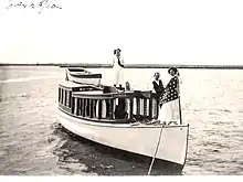 The Farquhar Bethune Grant, on the tip of the cape and south, is now the location of the neighborhoods of Point La Vista, the rest of Miramar Terrace and ten riverfront street-sized subdivisions to Miramar Center which fall within the New Ross Plantation boundaries.[17] In 1904, a few years after Jacksonville's "Great Fire", R. Fleming Bowden, Sheriff and Tax Collector, and a descendant of the pioneering Hogans and Bowden families, purchased 140 acres of undeveloped land known as "Point La Vista".[18] For over 50 years, the Bowden family lived on an estate there. Flora Genth Bowden, the Sheriff's wife, was a founder and president of the Jacksonville Humane Society.[19] One of their African-American servants, Shack Thomas, a former slave, gave an autobiographical field interview in the Works Project Administration’s (WPA’s) oral history “Slave Narratives”, giving a glimpse into the life experiences of formerly enslaved African workers. In his 1930 interview, Thomas, by then a centenarian, recounted his earliest memories of living on a plantation in West Florida owned by a "Mr. Jim Campbell" where they grew corn, peanuts, cotton and potatoes. Mr. Campbell was described as "moderate" and Thomas said, "the most he would give us was a switching and most of the time we could pray our way out of that". After freedom and a move to Jacksonville, Thomas said he worked for many people, but "I worked for Mr. Bowden the longest".[20] A private Bowden family scrapbook depicts turn-of-the-century life on the forested cape as filled with hunting and fishing, picnics and leisurely boating trips on their small steamer the "La Vista". Except for a few artesian wells, nothing remains of the turn-of-the-century Bowden estate in today's Point La Vista or Granada subdivisions.