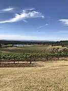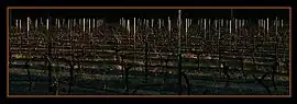 Viticulture in the Hunter Valley is often considered to have commenced with James Busby. In the 1820s he studied oenology, wrote a treatise and guidance manual on the subject and briefly taught viticulture at a Liverpool farm school. In 1831 he undertook a tour of French and Spanish vineyards which resulted in two published journals of the trip.[12] He returned with 570 cuttings of which 363 survived carefully wrapped in moss, sand and soil.[13] Half went to the newly established Royal Botanical Gardens in Sydney. The rest he took with him to the family estate of Kirkton, just north of Belford on the Hunter river run by his brother-in-law William Kelman. Also in 1828 George Wyndam planted vines at his Dalwood estate with the first shiraz being planted there in 1830.[14] The Drayton family established a vineyard at Pokolbin around the late 1850s and the Tyrrells Estate was set up in 1859 with Frederick Wilkinson planting vines at Oakdale in 1866. After the Robertson Land Act was introduced in 1861 the way was opened for small landholders and more people began to settle in the Rothbury/Pokolbin area.[12] The main farming activities were wheat, tobacco, dairy and grapes. By the 1930s the area was known for producing quality wines.