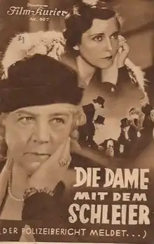 Police Report (German: Der Polizeibericht meldet) is a 1934 German mystery crime film directed by Georg Jacoby and starring Olga Tschechowa, Paul Otto and Hansi Niese.[1] [2] It was adapted from the 1932 novel Die Frau im schwarzen Schleier by Hedda Lindne.