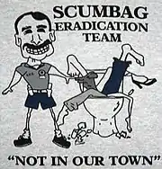Logo on T-shirts sold at Daytona Beach Police Department headquarters in Florida, cited in a lawsuit against the DBPD alleging police brutality, is said to show the DBPD condones violence.[96][97]
