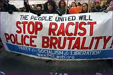 Police brutality can be associated with racial profiling. Differences in race, religion, politics, or socioeconomic status often exist between police and the citizenry. Some police officers may view the population (or a particular subset thereof) as generally deserving of punishment. Portions of the population may perceive the police to be oppressors. In addition, there is a perception that victims of police brutality often belong to relatively powerless groups, such as minorities, the disabled, and the poor.[73] According to a 2015 and 2016 project by The Guardian, more white people are killed by police in raw numbers than black people are, but after adjusting this finding based on the fact that the black population is smaller than the white population, twice as many black people are killed by police per capita than white people are.[74][75] A 2019 study showed that people of color face a higher likelihood of being killed by police than white men and women do, that risk peaks in young adulthood, and men of color face a nontrivial lifetime risk of being killed by police.[76][77]