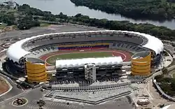 The stadium was initially inaugurated in 1980 under the name of Estadio Gino Scaringella, Named in memory of a referee of Italian descent who lost his life refereeing amateur football matches on the stadium's land years before it was built.[2] Seeing the need to build a place where sports could be practiced properly in the region, Corporación Venezolana de Guayana began in 1988 the construction of a sports center, in the same zone of the stadium.