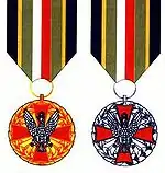 The Polish Army Medal (Polish: Medal Wojska Polskiego) was established by Poland on 3 September 1999 to recognize service to the Polish Army by foreign civilians and military personnel.[1] The medal is presented in three grades Gold, Silver, and Bronze by the Polish Minister of National Defence. Most awards are presented to members of allied armed forces, but the medal is also awarded to civilians who contribute to promoting the history and traditions of the Polish Army outside of Poland.[2]