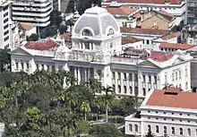 For many years, the seat of Alepe was the Joaquim Nabuco Palace, whose name, since 1948, is a tribute to the abolitionist of the same name and founder of the Brazilian Academy of Letters (Academia Brasileira de Letras - ABL).[74] Its construction, which had its approval by Provincial Law No. 963, was started in 1870, and its inauguration occurred on March 1, 1875. The author of the project was the engineer José Tibúrcio Pereira de Magalhães and the work was carried out by the architect José Inácio D'Ávila.[75] After functioning as the seat of the legislative power for much of its history, the Joaquim Nabuco Palace ceased to have this function as of August 1, 2017 and became the State Legislative Museum, displaying various objects and documents that show the history of this power, the palace is now open to visits by tourists and students.[76][77][78] The current headquarters of the state legislative power is the Governor Miguel Arraes de Alencar Building, which is named after former governor Miguel Arraes. The plenary of the new headquarters is called Governor Eduardo Campos Plenary.[77][79][80]