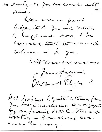 - ↑ Alice Stuart-Wortley, Elgar's close friend and correspondent, whom he nicknamed "Windflower"