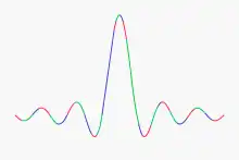 Sinc function approximated using a smooth Bézier spline, i.e., a series of smoothly-joined Bézier curves