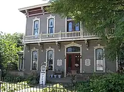 The house was built in 1879 in an Italianate style. It is rectangular with a brick façade over a wood frame. The north face is symmetrical with the front door centered under an arched transom.[2]