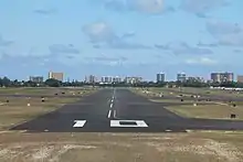 Pompano Beach Airport was constructed during World War II as an Naval outlying landing field (NOLF) for Naval Air Station Fort Lauderdale, what is now the Fort Lauderdale-Hollywood International Airport. On August 29, 1947, the City of Pompano Beach obtained the Airport under the Surplus Property Act of 1944 and renamed it Pompano Beach Air Park, due to its intent to limit the airport's usage to general aviation. For the same reason, the City shortened Runway 15–33 from its original length of 5,000 feet (1,500 m) to its current length of 4,418 feet (1,347 m) in 1971.