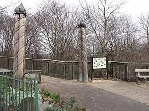 The entrance on Crookes Valley Road has pillars made from carved telegraph poles.