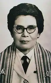 Poonsapaya also worked toward the advancement of women. She founded the Thailand chapter of Zonta International, as well as the Thai Association of University Women.[6] She and her husband, Mom Luang Chirayu Navawongs, whom she married in 1952, also contributed to various other charitable causes (they had no children). Following her husband's death in 2003, she donated their residence to serve as a learning centre. It is now known as the Chirayu–Poonsapaya Museum and Discovery Learning Library.[2][3]