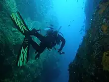 The Poor Knights Islands Marine Reserve is a protected area off the coast of the North Island of New Zealand. The reserve, established in 1981 and covering an area of 1,890 ha (4,700 acres),[1] is administered by the Department of Conservation. It surrounds the Poor Knights Islands and adjacent rock stacks Sugarloaf Rock and High Peak Rocks. It is one of the world's ten most popular sites for scuba diving.[2] with dive trips regularly leaving from the town of Tutukaka.