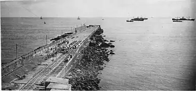 After completion in 1938, the configuration of the port had taken form and included a water level of a surface of 125 hectares, moles, quay levels and quays for the accosting of the trading ships.