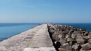 Lota (in Portuguese it literally means "fish market" and used as such until the 1990s) is a land area within the port of Póvoa de Varzim, near the North Breakwater. In the past, it was a beach where the fish was landed and sold, named Praia de Peixe (Fish Beach), possibly because of the excessively fine sand or its use it was not popular with beach-goers, unlike nearby Praia de Banhos (Baths Beach) with larger sand grains and used by tourists since the 18th century. It was also the location of Ribeira shipyard.[3][4][7]