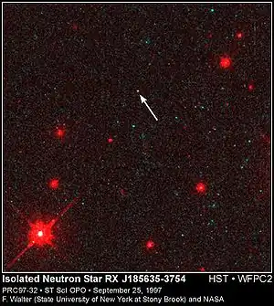 The first direct observation of a neutron star in visible light, recorded by the Hubble Space Telescope in 1997.