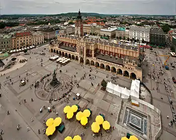 The market square (or sometimes, the market place) is a feature of many European and colonial towns. It is an open area where market stalls are traditionally set out for trading, commonly on one particular day of the week known as market day.