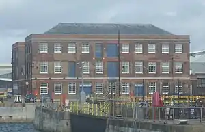 The Portsmouth Block Mills form part of the Portsmouth Dockyard at Portsmouth, Hampshire, England, and were built during the Napoleonic Wars to supply the British Royal Navy with pulley blocks. They started the age of mass-production using all-metal machine tools and are regarded as one of the seminal buildings of the British Industrial Revolution. They are also the site of the first stationary steam engines used by the Admiralty.[1]
