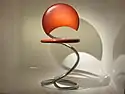 It was of the most expensive of Henningsen's lamps to produce because the paint and varnish work required 130 steps. It was discontinued in 1991.[68] This lamp was made up of ten lacquered metal shades. Each shade has four different colors: white, chrome, orange, and blue. The center rod that holds the bulb could be adjusted up and down. This allows the user to adjust the color temperature from cool to warm by moving the center rod. |