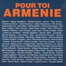 "Pour toi Arménie" (English translation: "For You, Armenia") is a 1989 song written and composed by Charles Aznavour, and recorded by a group of French singers (and also a few actors and TV presenters) who were popular at the time. This charity single was intended to raise funds to help the Armenians who experienced the 1988 Spitak earthquake. It sold more than 1 million copies under the Trema-EMI label.[1]