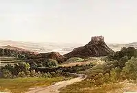 Painting by Thomas Ender Burg in the foreground, castle in the background.