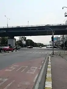 Pracha Chuen Road at Phong Phet Intersection, where it crosses Ngamwongwan Road (Highway 302), downtown Nonthaburi.