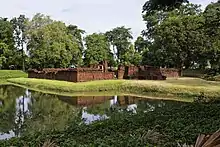 Laterite is the main material used for the construction. Gold ornaments, bronze and stone statues as well as brown glazed ceramics were unearthed. In 2017, a gold ring set with a translucent blue quartz in perfect condition aged around the early 11th century, was also discovered here.[2]