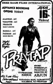 Pratap is a 1993 Indian Tamil-language action film written, directed and produced by Arjun. The film stars himself, Khushbu, Janagaraj, Devan and Rocky Rajesh. The film was released on 16 April 1993.