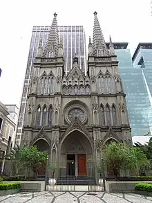Ashbel Green Simonton established the church on January 12, 1862. It used various sites until it acquired its current site in December 1870.[1] On March 29, 1874, the building was opened as the first church building of the Presbyterians in Brazil. During 1897–1925 Rev. Álvaro Reis was the pastor. His influence and service was recognized through the name of a middle school and a square in Rio. In August 1926 Rev. Matthias Gomes de Santos remade the project of constructing a new building. He invited the architect Ascanio Viana who redesigned the building in a Neo-Gothic style. This work lasted about 14 years.[2] It was several times renovated, the last was in 2002. The church celebrated its 150th anniversary on Thursday, January 12, 2012.[3]