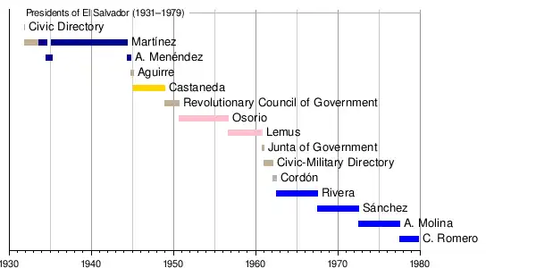- ↑ "Presidentes de El Salvador – Colonel Arturo Armando Molina" [Presidents of El Salvador – Colonel Arturo Armando Molina]. casapres.gob (in Spanish). Archived from the original on 2 March 2009. Retrieved 14 July 2021.