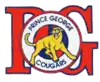 The Cougars colours are red, white and black. Home jerseys have a white upper portion, with a burgundy lower portion, separated by a diagonal black stripe. Away jerseys have a black upper portion, with a burgundy lower portion, separated by a diagonal white stripe. Prince George's third jersey features a redesigned logo (inset), on a burgundy jersey, with black, grey and white trim on the lower portion. On August 20, 2008, the Cougars unveiled a new logo, resembling closer to the third logo than the second, and was designed by Mike Doran of Splash Media.