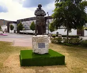 On 6 July 2019 a life-size statue called 'The Airborne Soldier' was unveiled in the park. The figure stands on a base of stone from the Falkland Islands, a gift from the people and Government of the Falkland Islands. Sculpted by Amy Goodman, the statue is located in Aldershot in recognition of the more than 50 years association the Parachute Regiment and Airborne Forces had with the town and people of Aldershot from 1946 to 2000. The statue is placed looking towards the former Parachute Regiment Depot in the Military Town. More than 2,000 former and serving Airborne Forces soldiers led by the Band of the Parachute Regiment paraded at the celebrations followed by a drumhead service in Princes Gardens.[9][10]