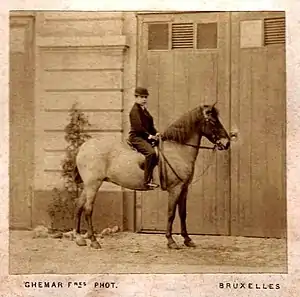 Leopold, Duke of Brabant with his pony Kiss me quick. Photography by Ghémar Frères, 1868.