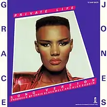 "Private Life" was released as the third single from the Warm Leatherette album. However, it marked a new era in Jones' career as she left her disco persona behind her and adopted an entirely different image, exploring genres like reggae, rock and new wave. It became Grace Jones' first ever chart entry in the UK, peaking at number 17. The single's B-side was a non-album track; "She's Lost Control", originally recorded by Joy Division. Both tracks were remixed and re-edited for the 7" single with the 4:38 version of "Private Life", now available on the Spectrum/Universal Music for Girls Night Out compilation CD.[4]