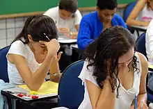 The ProUni selection process is composed of two phases: the regular process and the remaining scholarship process. In the regular process, candidates who have taken part in the National High School Exam (ENEM in Portuguese) of the previous year and who have obtained at least 450 points on the average of the exam scores and a score above zero on the essay can apply.[8][9] Candidates can apply for the remaining scholarships if they:[7]