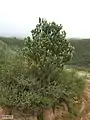 The plant dies after a fire but the seeds survive. The seeds are stored in a shell and released after they are ripe and are dispersed by the wind. The plant is unisexual. Pollination takes place through the action of birds. The plant grows on mountainous acid veld and fynbos at altitudes of 1,200 - 2,300 m. In Afrikaans it is known as the lippeblomsuikerbos. The plant's national number is 98.[2]