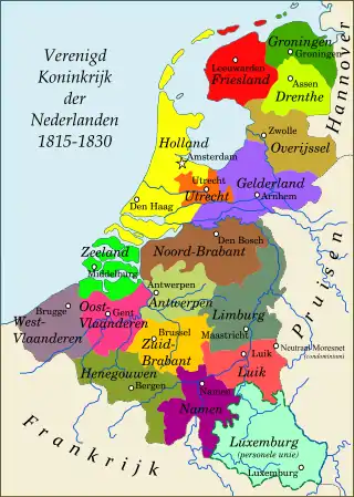 The United Kingdom of the Netherlands with the Province of Limburg in greyish green.