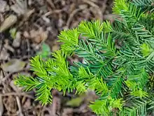 Prumnopitys andina, the lleuque or Chilean plum yew,[3] is an evergreen coniferous tree native to south-central Chile and a few areas in adjacent parts of westernmost Argentina from 36 to 40° South latitude. It lives on moderately wet soils, preferably on Andean slopes from 500–1,100 meters (1,600–3,600 ft).