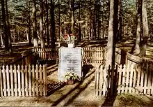 During the German occupation of Poland (World War II), the Germans carried out a massacre of nine Poles including women and children in October 1944 (see also Nazi crimes against the Polish nation). There is a memorial at the site.