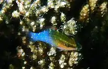 Pseudochromis cyanotaenia, the surge dottyback or blue-barred dottyback, is a species of ray-finned fish from the Western Pacific which is classified in the family Pseudochromidae. It occasionally makes its way into the aquarium trade. It grows to a length of 6 cm.[1]