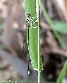 Pseudocopera ciliata, commonly known as the black-kneed featherlegs, is a species of white-legged damselfly in the family Platycnemididae. It can be found in Vietnam.[1][2]
