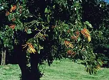 The most common hosts are oaks(Quercus species) and other hardwoods.[4] Other hosts are the conifers: Pinus leiophylla, P. montezumae, P. teocote and P. oocarpa.[4] This species causes significant damage to pine forests used for harvesting wood.[4] However, despite being a damaging parasite of conifers, it is important for medicine and wildlife.[4]