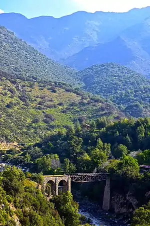 Puente Alto-El Volcán Railway is a small military railway between Puente Alto and El Volcán in Chile. The railway had a narrow gauge of 600 mm (1 ft 11+5⁄8 in), and was constructed in 1906 under Chile's Ministry of Railways. As each section was completed, it was inaugurated: on March 1, 1910 (from Puento Alto to El Canelo); in 1911 (from El Canelo to El Melocotón); and on June 9, 1914 (from El Melocotón to El Volcan). The railway was built at a cost of $2,335,630 and remained operational until 1985.[1][2][3][4]