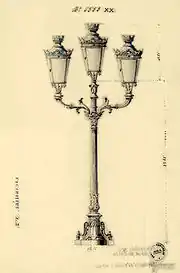 The triple-branched street lamp made by La Carrière in Paris and commissioned by José Echeverría to adorn and illuminate the Puente de España[3]