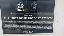 - ↑ Fernández, Emilio (31 March 2021). "Rehabilitan Puente de Fierro de Ecatepec, construido por Gustave Eiffel" [Puente de Fierro de Ecatepec, built by Gustave Eiffel, rehabilitated]. El Universal (in Spanish). Retrieved 2 May 2022.