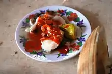 Most places to eat in the town are impromptu food stands and pricy beachside restaurants serving seafood and pasta.[14] Chicken and meat dishes are available but most specialties focus on seafood. Fresh fish, especially tuna, is served here, served as a salad stuffed into an avocado or batter-fried tuna and fish prepared Veracruz style with a sauce of tomatoes, olives and onions. Other seafood available includes ocean perch, swordfish, shark, lobster, octopus and oysters, which are commonly served fried.[2][10]