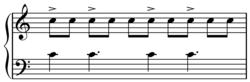 Pulses can occur at multiple metric levels – see figure. Pulse groups may be distinguished as synchronous, if all pulses on slower levels coincide with those on faster levels, and nonsynchronous, if not.
