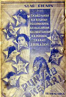 Punjab Kesari (transl.The Lion of Punjab) is 1938 Tamil-language thriller film directed by Fram Sethna. It was adapted from Te. Po. Krishnasami Pavalar's play of the same name. The film adaptation stars K. P. Kesavan, P. U. Chinnappa, Kali N. Rathnam and A. K. Rajalakshmi.