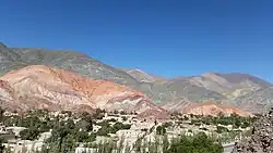 It is located at the Quebrada de Purmamarca, sometimes considered part of the Quebrada de Humahuaca. The Cerro de los Siete Colores (Hill of the Seven Colours) shows its colourful face to the nearby town.